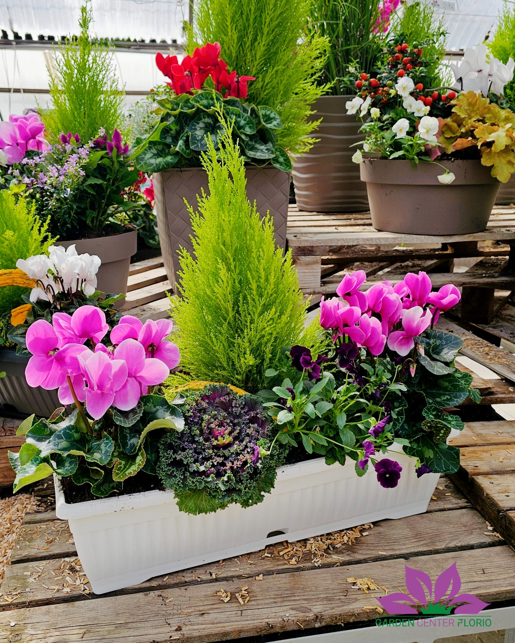 migliaia di ciclamini in tutte le tonalità, viole colorate e tanti altri fiori, e ancora… balconiere già pronte da portare a casa o creare su misura insieme al nostro staff.
